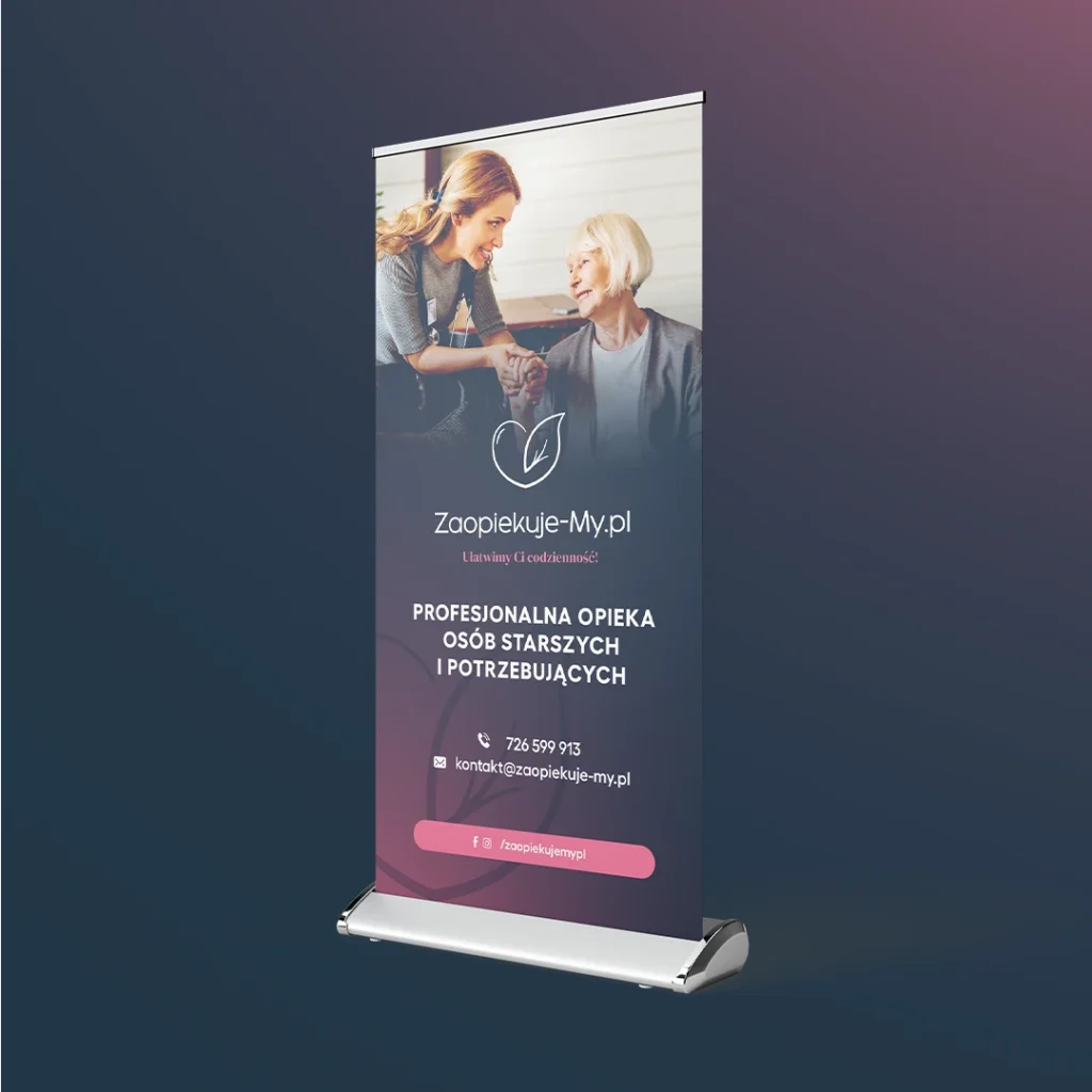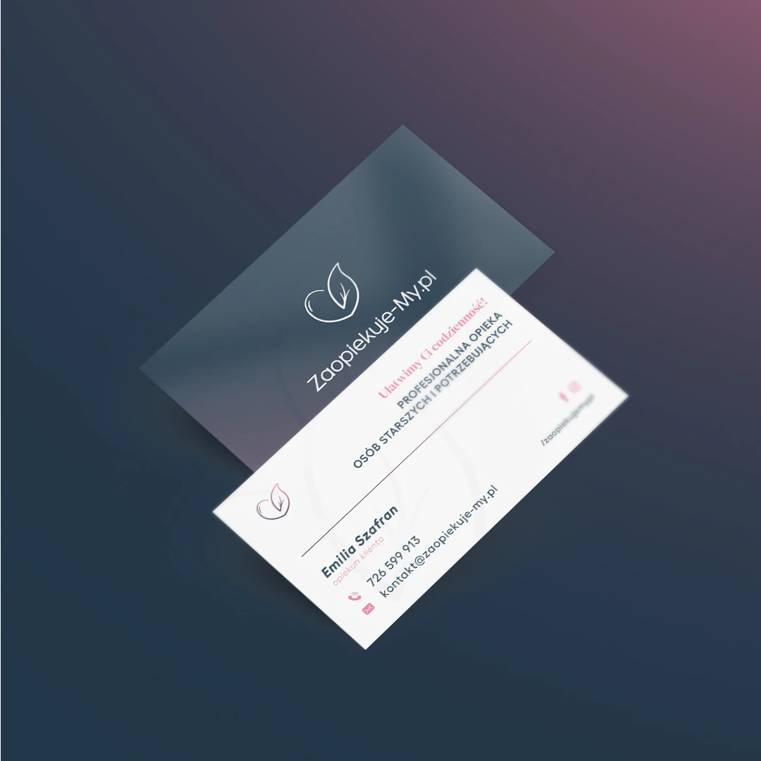 Projekt dla ZaopiekujeMy to połączenie estetyki z uważnością. Od logo, przez materiały graficzne i reklamowe, po detale komunikacyjne.